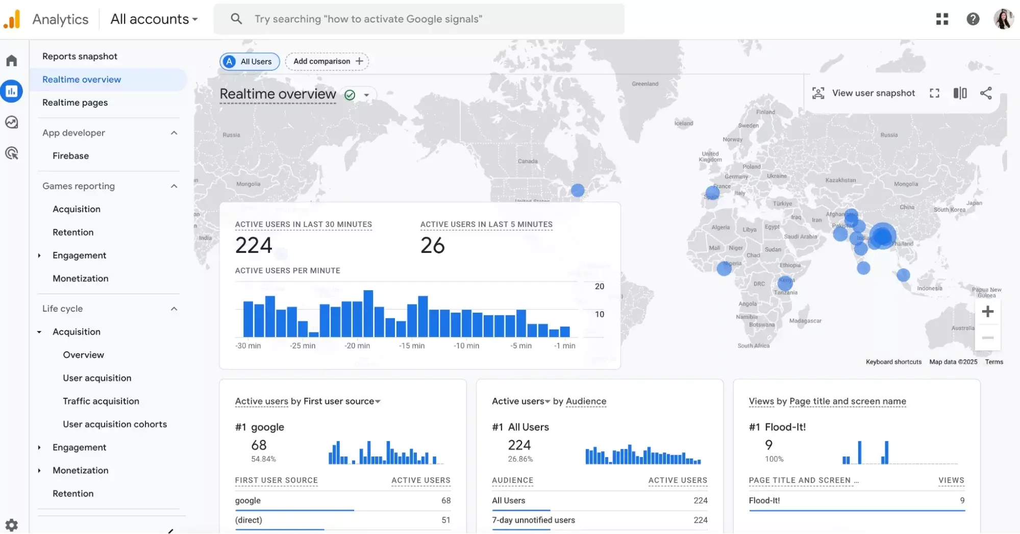 Under Engagemang - Händelser kan du se default (inte custom events) som page_view, user_engament m fl